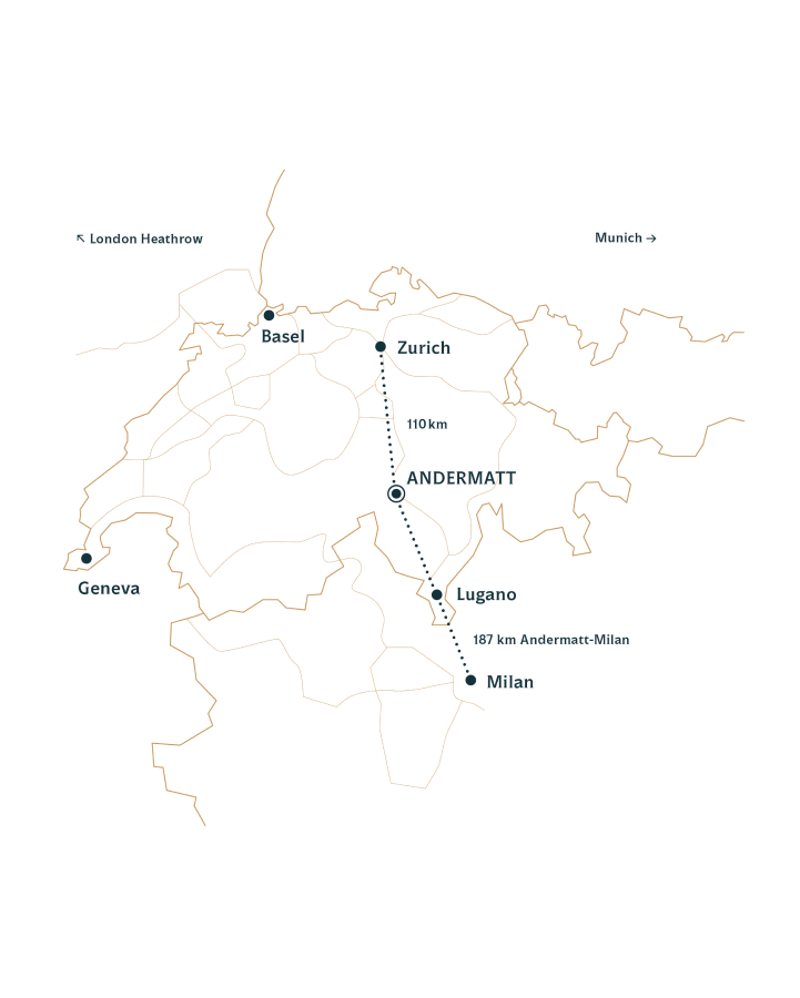 Andermatt is accessible from everywhere, whether by road, rail or air.